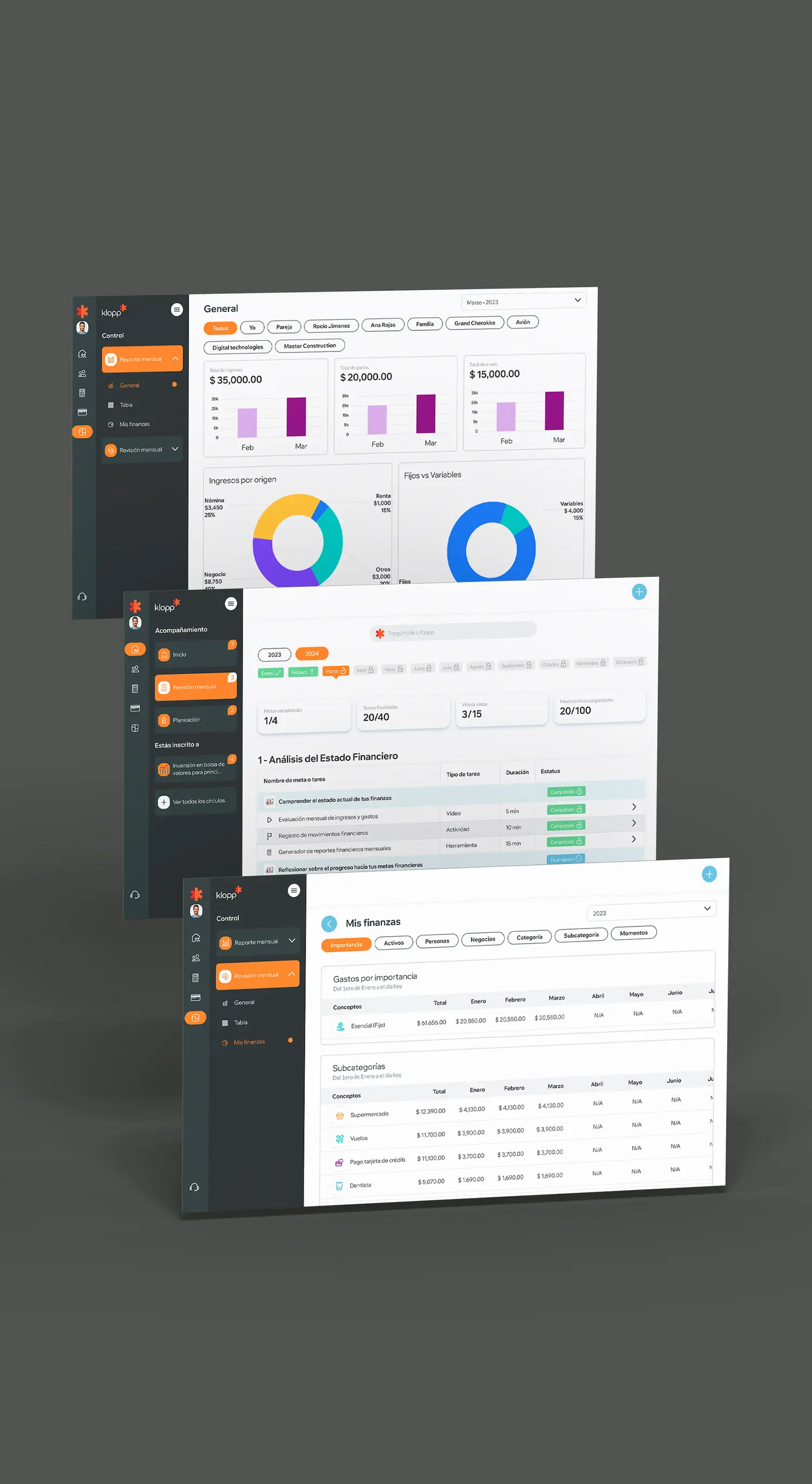 Un conjunto completo de herramientas para ayudar a las personas a mantener una visión clara y organizada de sus finanzas. Desde el seguimiento de los gastos diarios y la gestión del flujo de caja hasta el control de las deudas, los activos y las pólizas de seguro.