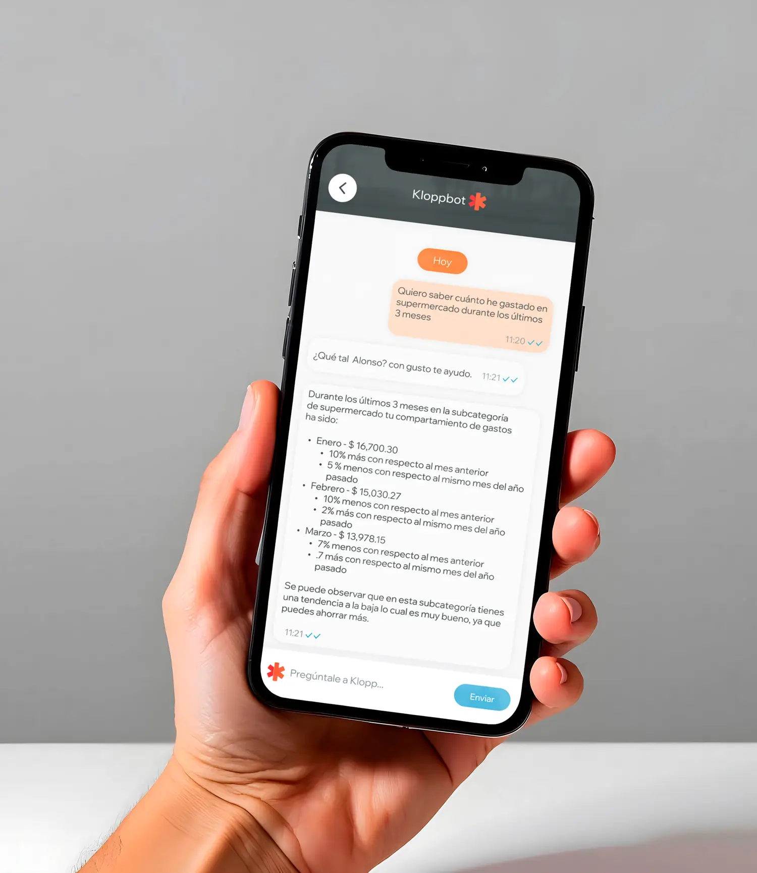 Nuestro chat con IA se conecta con todo el ecosistema para ayudar a los usuarios con cualquier cosa que necesiten, desde educación hasta actualizaciones financieras en tiempo real, brindando información personalizada que mejora su experiencia.